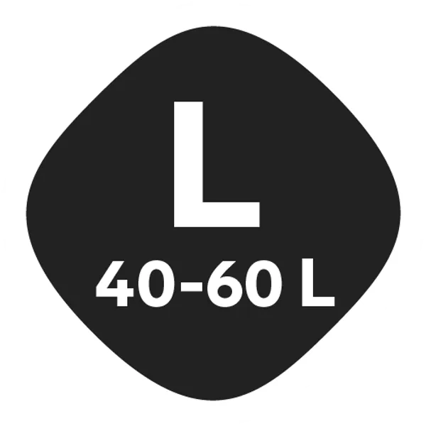 • Volume: S (15-25L), M (25-40L), L (40-60L)